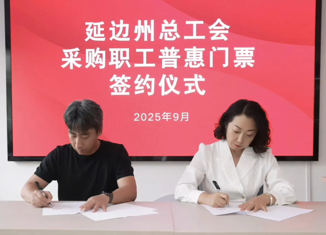 星期四09月11日延邊州總工會舉行采購職工普惠門票簽約儀式 助力職為慶祝中華全國總工會成立100周年,全面落實(shí)吉林省總工會關(guān)于構(gòu)建全時(shí)空職工高品質(zhì)生活服務(wù)體系指導(dǎo)精神,豐富拓展全州職工思想政治引領(lǐng)體系,根